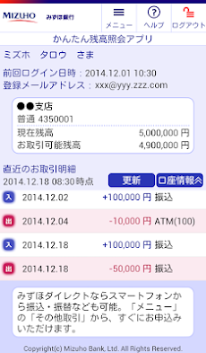 みずほ銀行 かんたん残高照会アプリ Androidアプリ Applion